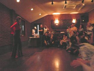 隔週水曜日にぼくがレッスンで使わせてもらっている会場なんですが、やはりパーティとなれば雰囲気が変わりますね。水曜日のレッスンに来ていた方は、待ちに待った練習の成果をだすところでしたね~。