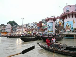 ・説明しておくと、早朝にボートに乗って、川岸のバラナシ的な建物とバラナシの人々の生活を見るのが、観光ポイントである。そのため、前日からボート人はこれらの顧客獲得のため必死である。