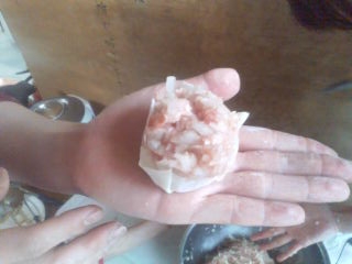ここらあたりから、女性陣から、「私のシューマイは○○を入れて~」、「私は~」と会話が弾んでたので、ばくは、