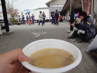 お昼は、たまたま炊き出しのトン汁をいただきました。身体にしみます!