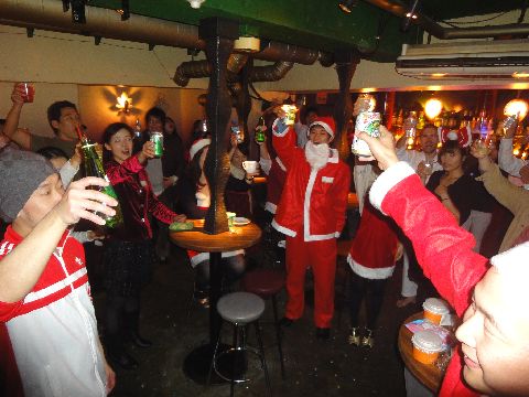 ”今年もサルサをやっててホント良かった! みんなにお疲れ様を!フエゴ忘年会&クリスマス会” TAKAです。今年も一年あっという間でしたね。パフォクラスもあって忙しい1年でしたが、今年もフエゴにきて頂き、スタッフ一同心より感謝しております。 さて、今年のテーマは、主役は参加するあなた、そして「みんなで作る忘年会」です。 以下、忘年会&クリスマス会の予定です。 ◆月日:12月20日(火) 特別レッスン有 ◆会費:予約申込1500円、当日(予約無)1700円 1ドリンク、フード付です。人数把握のため、予約申込と、なるべく事前に会費をRitzへお渡しください。 ☆予約メールはRitzへblue-b.r5@docomo.ne.jp参加者名をご記入下さい。 入場に関して、当日は22:00まで会費制です。22:00以降の入場料は当日会場で聞いてください。 ◆クリスマスプレゼント交換をします(参加自由・21:30頃) 1000円程度で、プレゼントをご用意ください。もらってうれしいものを考えてくださいね。 また、金券(相当)等、自作CD・DVD、賞味期限当日の食品などは避けて下さい。 あと、手提げ袋など入れて持ってきてくださいね。 ◆テーマカラーは゛レッド!゛ 情熱のフエゴカラーの赤色のシャツ・ドレスなど衣装・ワンポイント・サンタ衣装など、クリスマスにちなんだ格好をしてきてください。会場で準備してもOKです! ◆スケジュール: ・19:45 開場 ・20:15~20:45 サンタでSALSAレッスン(アイソレーション、ウォームアップ、衣装を着る人は、各自事前に準備しておいてください) ・20:45 忘年会開始 ・21:00 乾杯 ☆出し物(4組予定): 1.スティーブ's スタイル! 2.アヤのラブリィ・ベリーダンス! 3.ヒデのヒップホップ! 4.Mariと愉快な仲間たち! and more. ・21:30 プレゼント交換 ・22:00 DJ クラブタイムへ ◆その他 まだまだ出し物していただける方を募集しています。 今年の参加は60名程度を見込んでいます。 以上